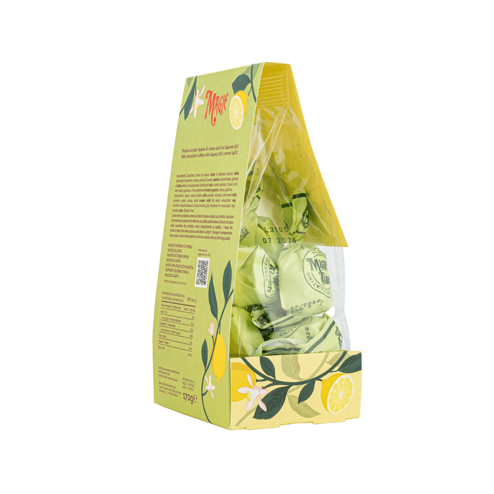 Praline al cioccolato ripiene di crema ganache, avvolte in un guscio di cioccolato al latte. Preparate secondo la ricetta tradizionale con panna, cioccolato e liquore. Un regalo perfetto in ogni occasione, sia per l’eleganza del nuovo packaging curato nei minimi dettagli, che per il gusto inconfondibile. -