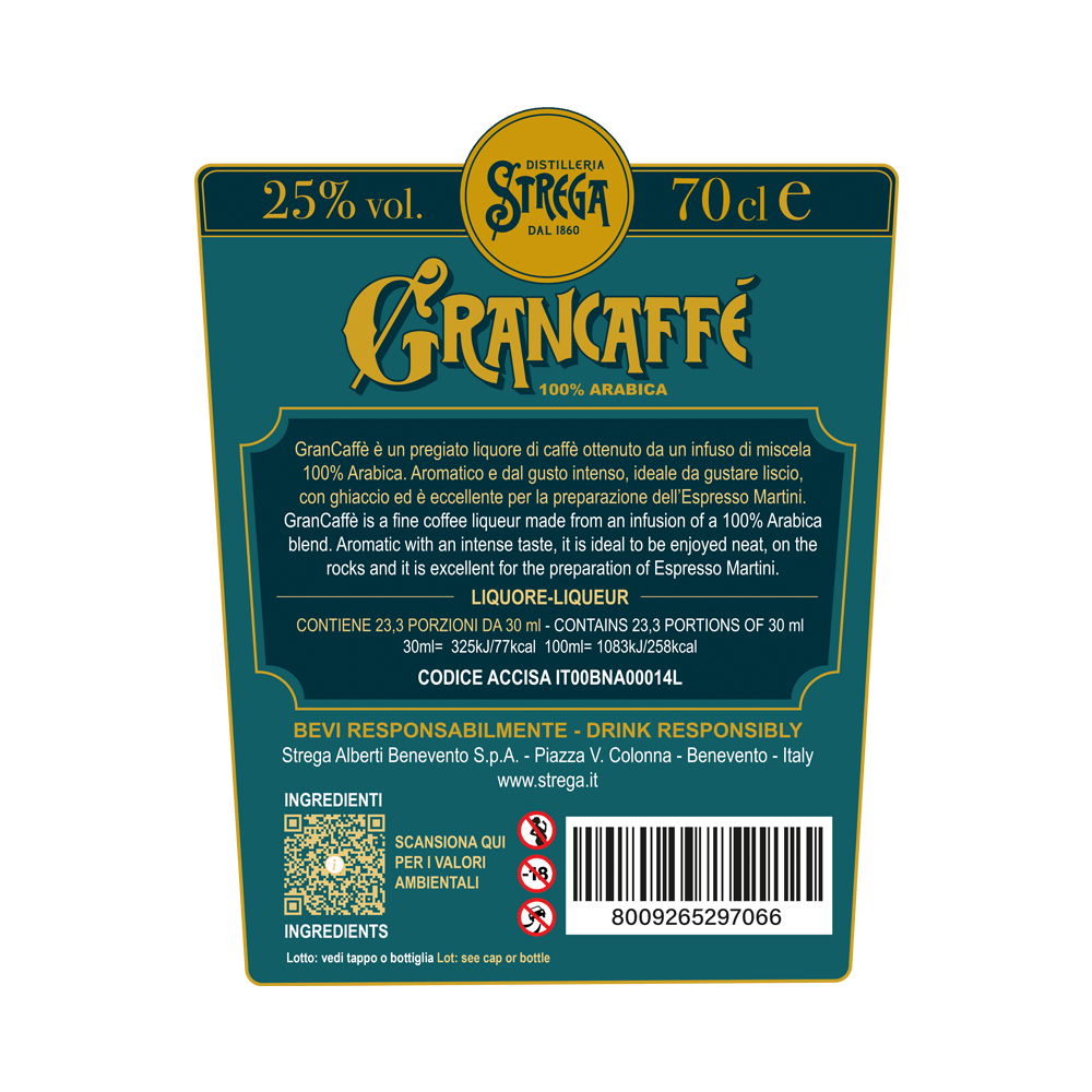 Grancaffè è un pregiato liquore di caffè ottenuto da un infuso di miscela 100% arabica.